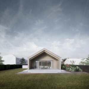 la casa come #archetipo dell’abitare richiama i valori antichi dalla #capanna. Un piano rialzato che accoglie una #forma pura dedicata allo sviluppo abitativo protetto con premura dall’elemento di copertura a due falde. La forte assialità lungo la quale è rivolto l’edificio valorizza i #traguardivisivi che rafforzano il rapporto con il contesto circostante.